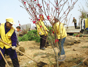 河北省邯鄲市園林綠化隊經過半個月的緊張工作,迎賓大道近日完成約1.5萬平方米的立體綠化林帶,植有雪、楓楊、花果石榴、合歡、西府海棠等34個品種約12000株植物,綠化景觀彰顯現代氣息。與此同時,迎賓大道還將更換安裝“中華燈”200基,每基13盞燈。