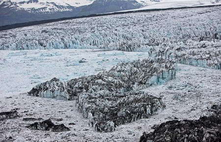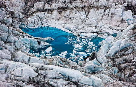 全球變暖正在影響著冰島的冰川:冰島南海岸的冰川一點一點地融化著,正在逐漸消失。冰川中間的藍湖就是堅冰融化形成的。專業攝影師里格納-西格德森30年來一直熱衷于拍攝冰川和藍湖,捕捉大自然的魅力的同時,也看到了全球變暖對于自然的影響日益嚴重。