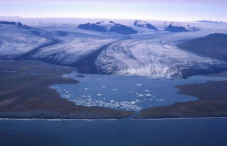 圖2:2002年所拍下的Breidamerkurjokull冰川和藍湖
