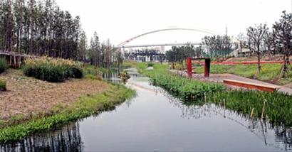 張飲江告訴記者,每天有2400立方米的黃浦江劣五類水被引入后灘公園的濕地水系,在園內(nèi)流淌1.7公里,在此過程不斷凈化,進入世博公園時就達到三類水。這些三類水進入世博公園水系后,形成了景觀用水,還能滿足世博公園與后灘公園自身的綠化灌溉及道路沖洗等需要。