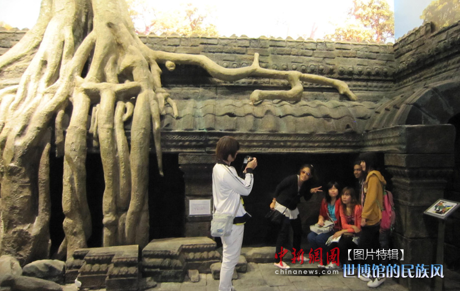 5月1日世博會開園首日,柬埔寨館內復制的塔布籠寺大樹成中國游客留影最多的場景。塔布籠寺那棵長在建筑中間的大樹因為美國電影“古墓麗影”而被中國人所熟知。