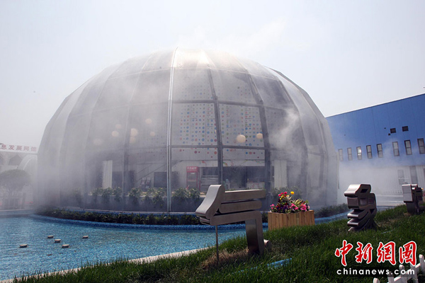 5月2日,上海世博會是第一個正式提出“低碳世博”理念的世博會,圍繞著這樣的理念,上海世博園區內的低碳元素比比皆是。圖為世界氣象館墻體外層如人的皮膚,防風、防雨、透氣。中新社發 湯彥俊 攝
