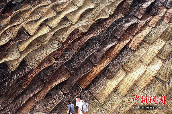 5月2日,上海世博會是第一個正式提出“低碳世博”理念的世博會,圍繞著這樣的理念,上海世博園區(qū)內(nèi)的低碳元素比比皆是。圖為西班牙館外墻是用藤條材料組成,既環(huán)保又傳統(tǒng)。中新社發(fā) 湯彥俊 攝