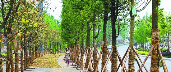 北碚方正大道公路旁新栽種的銀杏、香樟等植物