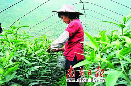 “別小看這樣一支鮮花,到廣州花店里一支可以賣到15元!蓖顿Y創辦百合花基地的徐總拿起一支剛割下的百合花告訴記者。他說,今年云南等地出現旱情,所以鮮花供給出現困難,而且云南鮮花一般是通過空運來廣州的,成本高、時間長,而他們出產的百合花正好彌補了這個缺點,從收割到上市,只需要2個小時。石湖的百合,運送到廣州芳村花卉市場后銷往全國各地,乃至出口。
