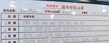 該帖顯示,“中簽號(hào)965、090、215、340、465、590、715、840”。之后,棕櫚園林搖出的“末'3'位”中簽號(hào)一般無二。從時(shí)間上看,中簽號(hào)被網(wǎng)民”公布“時(shí),棕櫚園林根本尚未進(jìn)行搖號(hào)抽簽。