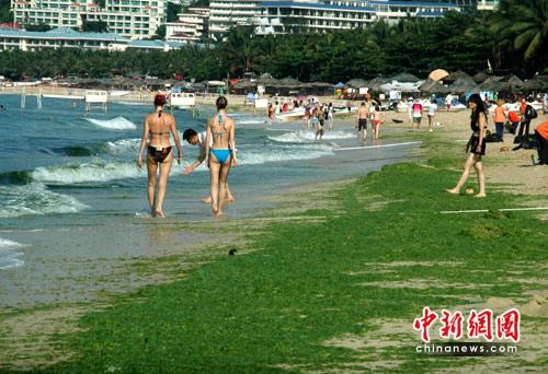 三亞海灘遭綠藻“襲擊” 專家稱不會影響環境
