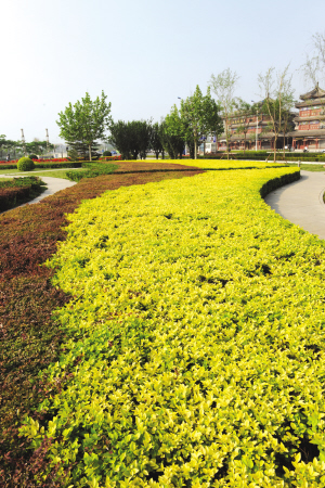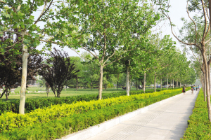 來楊柳青鎮的朋友可能會發現,主鎮區的柳口路、柳霞路、澤楊道等主干道路以及御河風景區都變得很漂亮,而綠化的提升又成為主干道路和景觀區的最搶眼景致。便道兩旁樹木品種豐富多樣,各色鮮花按季節交替開放。綠化隔離帶栽種的植被層次分明,錯落有致,并且栽種了名貴的盆景式樹。御河景區更是以高大喬木作為主體綠化植被廣泛栽種。行駛于道路上,徜徉在御河邊,人們不僅能緩解視覺疲勞,而且更加能感受到古鎮別樣景致所帶來的享受。