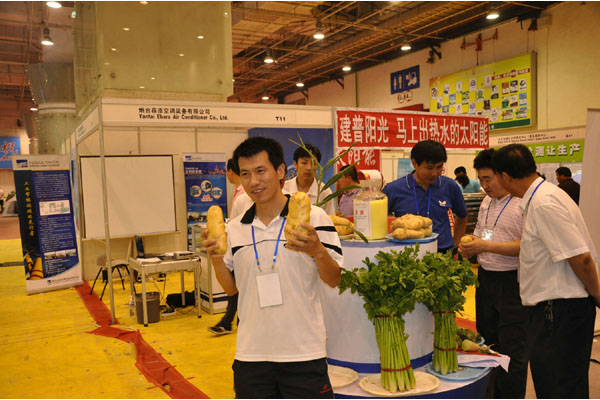參展商在展示施用雙酶肥料種植的綠色食品。