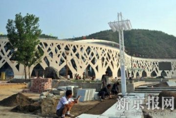 [背景]蒲子文化宮外觀造型為鋼筋混凝土結(jié)構(gòu),由23棵大樹圍繞而成,樹枝上點綴上鳥巢,頂部為“樹”造型,非常壯觀宏大,因而有人指出其像“鳥巢”。