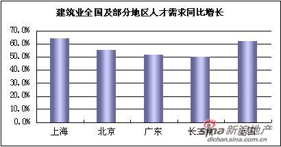 2009年我國(guó)經(jīng)濟(jì)恢復(fù)較快,為2010年的發(fā)展奠定了良好基礎(chǔ),所以今年上半年的人才需求增長(zhǎng)并不是特別明顯,下半年部分城市人才需求將會(huì)呈現(xiàn)“井噴”狀態(tài)。據(jù)建筑英才網(wǎng)數(shù)據(jù)顯示,建筑業(yè)上半年全國(guó)范圍內(nèi)人才需求同比增長(zhǎng)61%,其中以一線(xiàn)城市人才需求最大,長(zhǎng)三角區(qū)的人才需求增長(zhǎng)最快。一線(xiàn)城市人才需求量最大的城市為上海,同比增長(zhǎng)64.4%,其次是北京、廣東地區(qū),同比增長(zhǎng)55.1%和51.3%。截至6月底,長(zhǎng)三角地區(qū)二線(xiàn)城市蘇州、杭州、南京、寧波等城市人才需求同比增長(zhǎng)50%,諸多新項(xiàng)目的上馬帶來(lái)了人才供不應(yīng)求的局面。