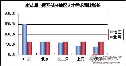 如果建筑設(shè)計(jì)類(lèi)人員是注重建筑業(yè)“軟性”建設(shè),工程施工類(lèi)技術(shù)性人員就是將“軟性的工程”變成“硬性”的實(shí)體,建造師就是這一領(lǐng)域的代表性技術(shù)人才。據(jù)了解,目前我國(guó)具有建造師資格證的人員不到15萬(wàn),而建筑企業(yè)對(duì)該職位的需求絕對(duì)不只是這個(gè)數(shù)目。上半年的建造師,同比增長(zhǎng)了63.6%,以廣東、北京、長(zhǎng)三角區(qū)需求量最大。今年上半年廣東建造師需求同比增長(zhǎng)了150%,北京同比增長(zhǎng)了61.4%,長(zhǎng)三角區(qū)同比增長(zhǎng)了60.6%。