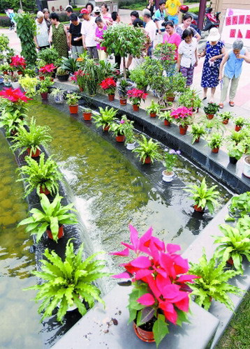 昨天(29日),北京市東城區新怡家園小區居民搬出自家種植的鮮花擺放到小區綠地水池旁。居民們紛紛把自己精心培育君子蘭、薔薇、玫瑰、綠蘿等20多個品種200多盆花草從自家陽臺搬到小區水池邊,不僅彼此交流了養花技藝,還美化了小區居住環境。