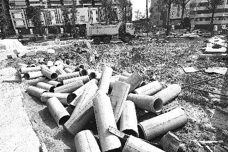 昨日,小龍坎廣場綠地上堆了不少建筑材料