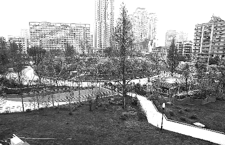 昨日下午,記者在現(xiàn)場看到,在建的小龍坎廣場被擋板圍住,路面的街心公園無人施工,也并未對外開放。街心花園里只有中心區(qū)域留有部分坪,栽種的大樹依然挺拔。不過,草坪四周都是泥土沙石,到處堆放著建材,還有準(zhǔn)備鋪裝的石板路材料。在花園四周,則是狹窄的車行通道。