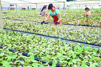 圖為基地花農正在檢查即將運往北京的蝴蝶蘭。
