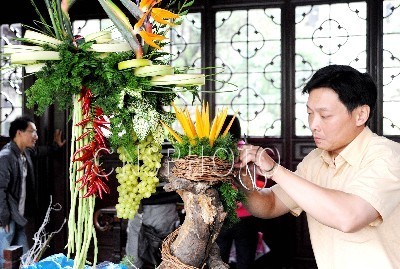 9月29日,“讓生活更美好”為主題的蘇州市第十一屆“留園杯”迎國慶藝術插花評比展,在蘇州留園開賽。來自虎丘山、拙政園和蘇州旅游與財經技術學院等11個園林景區、院校的數十名選手各顯身手,創意制作了28件藝術插花作品。