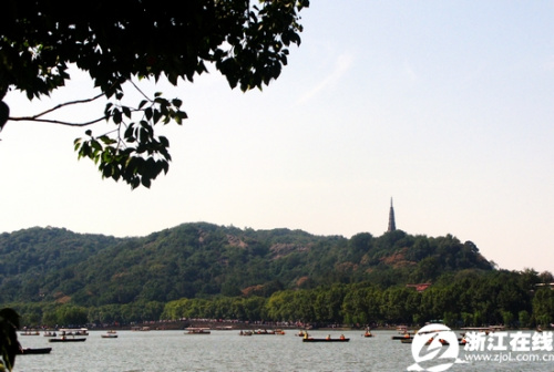西湖泛舟的游客不少