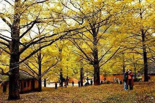 大桐灣村和小桐木灣的銀杏資源相對集中,是觀賞秋色以及休閑、攝影的良好去處。大部分的銀杏散落于每個鄉村山凹的旮旯,有的環抱著農家小院,有的擁于田間地頭,景致變化之多,通常是在下一個轉角處,就能體會“忽逢”的意外之喜,可說處處是景。只要進入了海洋鄉,隨便穿入哪個小村,哪片山林,都可以品嘗著這份發現之美。桂林因地處溫帶,銀杏的樹要比北方黃得晚一些,一般來說12月才進入狀態,如果不出現寒流和大風,可有一個月觀賞時間。想要一飽眼福的人們這回可要抓緊時間!