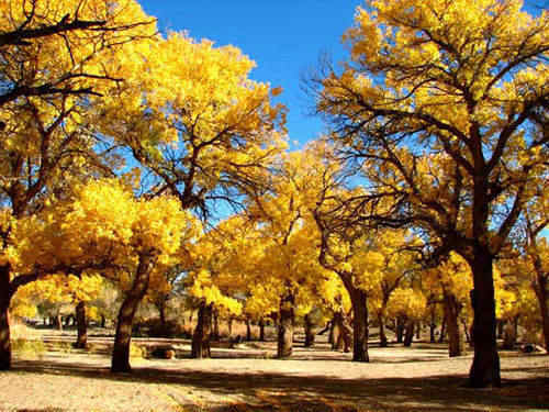 一千年不死,一千年不倒,一千年不爛,一棵胡楊樹,至少歷經(jīng)三千年的風(fēng)雨。漫長的歲月,使其記載了無數(shù)動人的故事,要了解它的故事、感受這種傳奇,一定要走進沙漠。額濟納(內(nèi)蒙古自治區(qū)阿拉善盟境內(nèi),額濟納旗位于內(nèi)蒙古自治區(qū)的西北端)是世界上僅存的三大胡楊林區(qū)之一,當(dāng)?shù)赜羞@樣的說法“不到額濟納,不知道大漠綠洲的雄大氣派;不親臨胡楊林,也無從領(lǐng)略胡楊樹的神奇之美”。