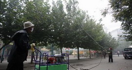 9日,石市園林部門專門調來一輛滅蟲車,對石市紡織局宿舍院內的受害樹進行了噴藥滅蟲。十幾分鐘的噴藥完成后,幾棵法桐下竟下起“蟲雨”。