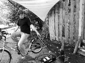 工作人員在25號院內調試為DJ設備供電的腳踏發電車