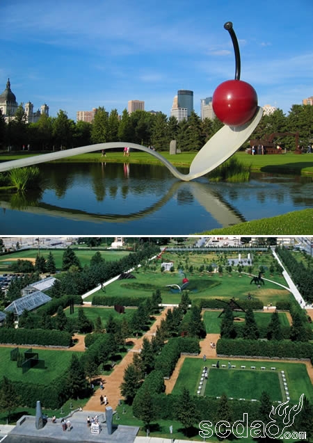 明尼阿波利斯是明尼蘇達(dá)州(Minnesota)最大的城市,也是美國大動(dòng)脈密西西比河的發(fā)源地。明尼阿波利斯與河對(duì)岸的圣保羅市通過多座大橋相連,組成了風(fēng)景優(yōu)美的雙子城。明尼阿波利斯沃克藝術(shù)中心(Walker Art Center)號(hào)稱“美國博物館之首”,收藏著許多20世紀(jì)歐洲及美國本地藝術(shù)家的作品。藝術(shù)中心的馬路對(duì)面便是全美國最大的明尼阿波利斯雕塑花園。園內(nèi)有40余件雕塑作品,最吸引人眼球的要數(shù)克雷歐登博格和古珍凡布魯格(Claes Oldenburg and Coosje van Bruggen)這一對(duì)夫妻檔設(shè)計(jì)的“勺與櫻桃”(Spoonbridge and Cherry)的雕塑噴泉。該園占地11英畝,景觀設(shè)計(jì)大師芭芭拉所羅門(Babara Solomon)對(duì)明尼阿波利斯雕塑園的評(píng)價(jià)是“the division between nature and art is invisible(自然和藝術(shù)之間的界限幾乎是無形的)”。