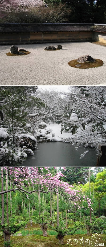 龍安寺是由室町時(shí)代應(yīng)仁之亂東軍大將細(xì)川勝元于寶德二年(公元1450年)創(chuàng)建的禪宗古寺。龍安寺位于日本的京都西北,龍安寺庭園是日本庭園抽象美的代表:在寺廟方丈前一片矩形的白砂地上,分布著5組長著青苔的巖石。龍安寺是著名的枯山水庭園,其已被列入聯(lián)合國教科文組織《世界文化遺產(chǎn)名錄》。