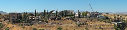 阿科桑蒂 阿科桑蒂是一個教育中心。在為期五周的學習項目中,既有建筑技術和生態建筑哲學的教授,又有建筑工作的繼續。世界各地的志愿者和學生紛紛來到這里,親身參加阿科桑蒂的建設,以獲得關于阿科桑蒂的原始體驗。他們有很多都是城市規劃專業的學生,其中一些人完成學習項目后可拿到大學的學分。當然規劃或建筑學背景并不是參加該項目的必備條件。興趣各異、背景不同的人們,同樣在為阿科桑蒂貢獻自己的時間和技能。 到目前為止,在6000多名參與者的努力下,阿科桑蒂已經建成為一片混合功能的建筑群。60至80位長期居民在此生活,他們繼續建設,并維護已經建成的環境。這些長期居民都是曾經參加學習項目、已經畢業的學生,承擔了設計、建設、景觀、維護、烹飪、木工、金屬鍛造、陶器、園藝、交流和管理等各項工作。舉世聞名的“索萊里風鈴”也在他們手中誕生,每年吸引五萬名游客前來參觀。 保羅·索萊里 (Paolo Soleri),1919年出生于意大利都靈。他集建筑師、城市規劃設計師、藝術家、工藝師、哲學家等多重身份于一身,終生致力于探索實現人類理想的無限可能性。他擅長運用各種媒介表達構想中的未來世界。“阿科桑蒂(Arcosanti)”是其最為知名的實踐。這個建筑在亞利桑那高原荒漠的城市實驗室試圖為不斷惡化的人居環境提供替代方案;通過創建體驗性空間來構筑一個可與人類發展相和諧的環境“原型”。索萊里獨創“生態建筑(Arcology)”一詞,通過將“生態”(Ecology)與“建筑”(Architecture)融合,規劃了一條可以幫助人類實現美、平等、愛的人類進化之路。這件已持續半個世紀的實踐作品,是索萊里博學睿智的結晶(在這個分工不斷細化的社會已不多見);它影響并激勵著無數有志之士參與到營建理想環境的探索中來。