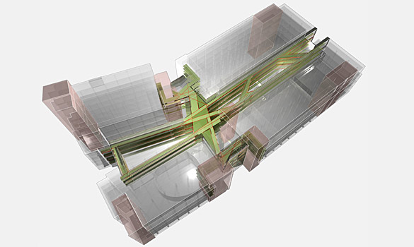 這個最先進的科學研究中心,大約將在2015年投入使用。它將是世界上同類科研設施中最大的。這個中心將容納不同科學領域的1,250名科學家,研究基礎的人類生物學問題,并且將他們的發現轉變為對一些疾病——例如對心臟病、糖尿病和癌癥的新的治療方法。 這幢建筑物的設計意圖,是促進平常不在一起工作的研究人員之間的合作,使他們能夠相互學習,將他們的學科引導到新的方向。 這幢建筑物的電梯、樓梯和公共設施——例如咖啡室,被安排在中央大廳,便于在這個中心四方的實驗室工作的科學家經常見面。 這幢建筑物不僅在視覺上,而且在功能上都類似于人類的染色體。它們可以交換分隔的基因。它們的“臂”由一個中央結構——所謂的“著絲體”(centromere)連接起來。 HOK倫敦建筑事務所的建筑師拉里·馬爾西克(Larry Malcic)說,他的團隊繪制了這幢建筑物的“四臂布局”,當時并不知道它的重要的象征意義。當他們提交這個設計方案時,科學家說:“這是一個染色體。”馬爾西克說,這個方案既有實用性,又是對這個中心努力實現的目標的一個非常好的隱喻。
