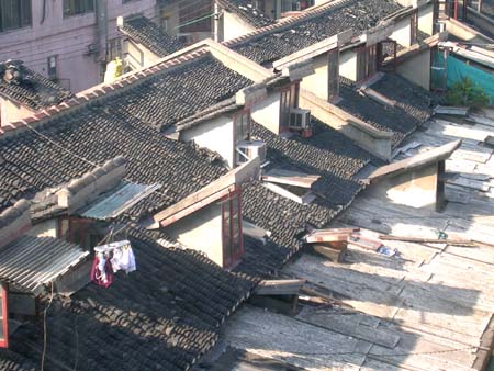 1925年4月12日,許廣平第一次叩開了阜成門內西三條21號(今門牌號標為"宮門口二條19號)黑漆漆的街門,看到了仰慕已久的"老虎尾巴",見到了在香煙迷霧中顯得有些朦朧的"先生"(據許廣平《欣慰的紀念》)。 在她的描述中,這是一個"點綴著兩三棵棗樹之類的不很寬大的院子,朝南就是三開間,特別的卻是當中的一間后面還緊接著像上海普通的亭子間大小的一間房子,那就是……'先生的工作室老虎尾巴'。"這其實就是在正房正中一間后面搭建出的一間平頂的灰棚,魯迅本人曾向人介紹說,"北京叫做老虎尾巴。這是房子中最便宜的一種。"(因其拖在正房后面,形似"老虎尾巴",故名) 在她的描述中,這是一個"點綴著兩三棵棗樹之類的不很寬大的院子,朝南就是三開間,特別的卻是當中的一間后面還緊接著像上海普通的亭子間大小的一間房子,那就是……'先生的工作室老虎尾巴'。"這其實就是在正房正中一間后面搭建出的一間平頂的灰棚,魯迅本人曾向人介紹說,"北京叫做老虎尾巴。這是房子中最便宜的一種。"(因其拖在正房后面,形似"老虎尾巴",故名) 但是,因為在其中曾誕生了《野草》、《彷徨》和《朝華夕拾》這幾部重要著作,從而是"老虎尾巴"這一流傳于北京民間的建筑術語成了中國現代文學史上最著名的書房之一。 1928年,住在正房東間的魯迅母親為了擴大自己的居室,曾經把自己的房間后墻后移,與"老虎尾巴"后墻相連。因此,在很長時間內,從后院看,已經看不出老虎尾巴的原貌,直到上世紀60年代予以恢復。 無論魯迅還是其他人的"老虎尾巴",一個最重要的功能顯然就是擴充了空間。在老北京,也有一個與此類似的建筑術語,稱為"老虎口"。和"老虎尾巴"設在正房后部不同,老虎口設在北京四合院正房堂屋之前---有的房主,為正房的通風與采光,在堂屋前退進一柱距而形成一間凹廊。這個凹廊,在古代建筑術語中,就叫做"老虎口"。 除去改善通風采光之外,這使主人多了一處室外乘涼的平臺。也有人說,魯迅的"老虎尾巴"就是受"老虎口"的啟發而設計建造的,而設在正房之后,既安靜,又便于在危險時刻躲避。 老虎窗:一個擁擠城市的“呼吸器官”