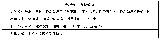 第四節 宗教設施 宗教活動場所。對損毀宗教活動場所及宗教教職人員生活用房的恢復重建,要一視同仁,同等對待,合理安排,給予支持。寺院等宗教活動場所的恢復重建,由相關部門進行評估并與寺院管委會協商,合理制定恢復重建方案。其中涉及文物保護單位宗教活動場所的原址恢復重建方案,要按規定報文物主管部門批準。 宗教教職人員生活用房。宗教教職人員生活用房的恢復重建,要合理確定建設規模和標準,與寺院管委會協商,統籌考慮施工組織方式。