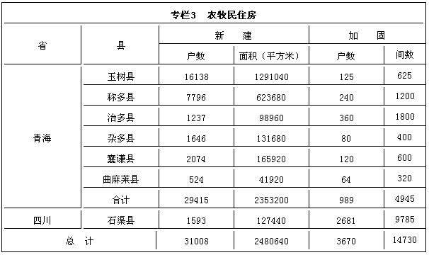 《玉樹地震災(zāi)后恢復(fù)重建總體規(guī)劃》(全文)