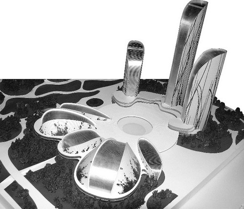 在安德魯提供的設計方案中,建筑群的中央是中空的環(huán)形建筑,看上去像噴涌不絕的泉眼。環(huán)形建筑周邊分布著八棟高低不同的建筑,靠近中心一側(cè)的建筑線條流暢,顏色也是晶瑩的銀白色,如泉水噴涌的軌跡。八棟建筑中有三棟較高,如三股沖向空中的水柱,讓人聯(lián)想起趵突泉的“三股水”;其余五棟較矮,如扣在地上的五只貝殼,“泉水”沿著脊線傾瀉而下。“安德魯之前來過濟南實地考察,并就設計思路與相關方面進行過溝通,他是不是從趵突泉得出的靈感,就不知道了。”一位工作人員介紹說。