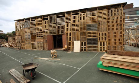英國的一所完全使用廢舊材料的劇院最近在倫敦建成。這些廢舊材料有舊的釘子、木材集裝架和廢棄的門。