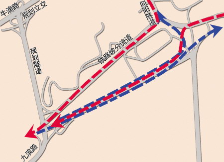 車站建成后,進入菜園壩的火車在龍家灣隧道附近便通過下穿隧道進入地下站臺。也就是說,改造后的菜園壩地區,在地面再見不到軌道。同時,圓形主體建筑面向長江一側出口將修建兩座過街天橋,乘客出站后可直接步入大型親水廣場公園。
