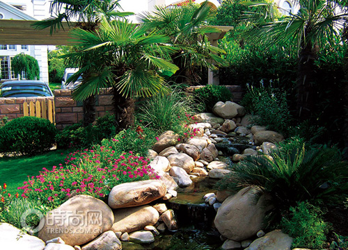 ◆ 200㎡以上大面積花園可造水景 擁有一個(gè)私人池塘夢(mèng)想的第一步是擬定正確的規(guī)劃。花園池塘應(yīng)該建造在靠近院子或者座椅旁,便于欣賞。如果花園池塘帶有噴泉的話,建造在花園的中央會(huì)看上去更好些。 第二步,要為池塘找一個(gè)合適的地址。最好每天陽光照射的時(shí)間在4~6小時(shí)以內(nèi),以便確保水池深水區(qū)的水溫不會(huì)過高。不要把池塘設(shè)計(jì)在落葉樹和針葉樹的附近,因?yàn)榈涞臉淙~和松針會(huì)影響水質(zhì),樹根的生長也會(huì)影響水池的結(jié)構(gòu)。 選好地點(diǎn)之后,按照規(guī)劃的方案,先挖好大小適度的坑,然后在上面鋪設(shè)10cm厚的黃砂,最后再鋪上專用的池塘襯墊,整理好以后,根據(jù)設(shè)計(jì)方案裝飾,接上專業(yè)的花園池子過濾系統(tǒng)就大功告成。一般而言,4㎡以內(nèi)大小的池塘在平地鋪設(shè)時(shí)按照相應(yīng)的專業(yè)意見,完全可以DIY完成,更大面積的則需要尋求專業(yè)團(tuán)隊(duì)的幫助。