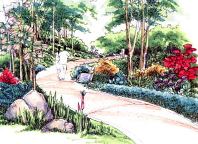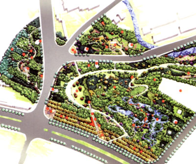武寧綠地位于普陀區武寧路、中寧路區域,面積8公頃,是普陀區今年立項建設的最大一塊綠地。基地被市政道路分為A、B、C三塊地塊。其中A、C兩塊下部將建設28000平方米的地下車庫。三塊綠地均在高壓走廊之下,因此,上下部立地條件復雜,對設計提出了較高的要求。 一、現狀分析 1.普陀區 上海市的西大門,有著優良傳統的老工業區正在經歷日新月異的改革與發展。 2.武寧路 上海西大門的重要交通干道,承擔起交通與上海門戶形象的職責,將要建設的高速道路和綠地以嶄新的形象體現快速發展的普陀特色風貌。 武寧綠地——充滿價值的地區,是生態的綠化空間,也是普陀新風貌的表現。 二、調查評價 核心思想 1.以基地周邊群眾為主要對象的抽樣調查是以人為本指導思想的實踐。 2.調查所得出的結論有助于設計的合理化。在設計追求藝術化和創新性的同時避免片面性的產生。 調查與評價的工作方法 以100份問卷形式的表格進行隨機居民調查(略去表格內容) 調查對象 基地周邊1km2居民小區的居民 調查地點 歸家宅/嵐風新村/信儀新村/和平新村/大濱巷/嵐皋小區/文化宮/天賜苑/萬泉新苑/華師三村/石泉苑 問卷的內容 問卷中的內容希望能夠緊貼本次規劃設計的主要要點。 三、數據的綜合評價 A 具有本土特色風格簡約明快的園林形式受到關注。 B 追求回歸自然的城市森林、生態問題受到普遍關注。 C 周邊環境在不斷的改善中,但更大面積的綠地受到市民喜愛。 2.場地綜合使用方式評價:市內大型公共綠地的活動空間受到大多數群眾歡迎。 A 健身與運動成為時尚 B 早晚鍛煉活動的人群較為集中。因此,部分活動場地的開放式管理較為合理。 3.與設計內容相關問題評價。 A 大部分意見認為園內可有一定量的水體。 B 春景秋色的季節性變化令居民感到愉快。 C 對高壓走廊空間的活動,由于其對人體的影響部分居民不愿參與其中。 D 具有代表性的雕塑作品和良好的生態化的植物景觀反映出普陀區的文化和精神面貌。 四、訪談內容評價 群眾關注的問題多與生活密切相關,人性化的要求成為主旋律。 另外,訪談過程中意外的發現奧運冠軍劉翔正是從普陀區走向世界的。這也為我們的設計提供了一個非常好的素材。