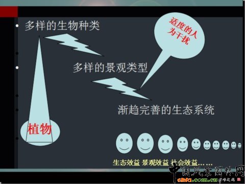 董 麗 北京林業大學園林學院 感謝項目組其他參與人員: 李湛東教授 北京林業大學園林學院 李春嬌 北京林業大學 園林學院 ![]() 正確處理下述關系: 植物和人之間 研究背景 ◆ “通向自然的軸線”北京奧林匹克森林公園 ◆ 植物景觀生態規劃設計? 概念的引入 ◆ 近自然園林-在自然地形和氣候條件基礎上和生態學原理的指導下,以協調人地關系為核心,以植物群落為主體的具有多功能效益的進展演替的生態經濟園林系統。 ◆ 近自然園林植物景觀-盡可能地保留原生狀態的自然植物群落;在充分掌握當地自然群落構成和演替規律和植被景觀特征的基礎上“模擬”自然植物群落和地域植被景觀的特征。 ◆ 自然度(naturalness) 自然度又稱自然性、天然性程度,是指自然的保存程度。一般認為它是自然生態系統遭到人類破壞程度的度量指標。 自然度的劃分--采用等級分化方法。目前 Machado Blangy and Mota(1994)自然系統的0-10級分級方法是最為完善的一種方法。 ![]()
