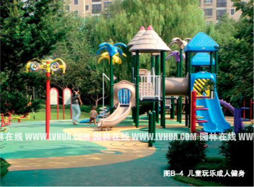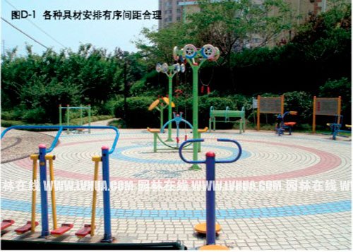 一、健身廣場的形成 社會的快速發展,健身的內容已逐步深入人心。加上老年化社會的形成.康健小區達標的要求,健身在新舊居住區、公園、學校、街道綠地甚至可利用的邊角地塊等地方,普遍成為一項老百姓喜聞樂見.老少咸宜的重要生活內容。因而產生了“健身廣場”這樣一種新型的項目和新的概念。但是在居住區環境景觀設中,對此認識不足,有的僅在規劃中表示地位,有的甚至忽略其存在,留造待物業或居委找生產商見縫插針自行建,很少有對“健身廣場”進行詳細選型排列布置的。本文意在引起對這方面的關心注意。(圖A) 二、健身廣場的類型 (一)健身類具材 市售各種成型的具材,多數為鋼木材制品,價廉物美,如太空漫步、腹背牽引器等,也包含健身道路—一現在是健身廣場的主要內容。 (圖B-l) (二)運動類具材 各種小型的常規定型具材,如單杠雙杠,吊環、羽毛球乒乓球場等,主要服務對象為中青年,在有較大場地的公園綠地可以見到這種布置。 (圖B-2) (三)玩具類具材 各種成組的小型多樣具材,也包含沙坑等設施。主耍服務對象為青少年,多數公園可以見到這種設施。 (圖B-3) (四)這三項內容從活動的“動靜”上是一致的,但服務對象是不同的,有時單獨設立,有時結合在一起布置。 (圖B-4) 三、健身廣場的選地 (一)居住區內的健身廣場經常布置在集中綠地、幢間綠地上,與住戶有適當距離,避免對居民的影響。一般每個居住區有多于一個健身廣場,用于安放健身類或玩具類具材。 (圖C-l) (二)公園內的健身廣場 往往選擇在靠近入口處,形成獨立的空間,有時健身具材是有很大規模,有時玩具具材擴展為娛樂運動,如攀巖等。(圖C-2) (三)街道綠地的健身廣場 應考慮地形,充分利用每個邊角布置,不影響其他活動,多數為小型多樣的健身類具材。 (圖C-3) 四、健身廣場的規劃 (一)各類具材選型妥當、間距合理,有規律地排列,互不影響使用。 (圖D-1) (二)有良好的活動環境,最好大部分具材處在樹蔭之下。 (圖D-2) (三)有防滑.排水的舒適鋪裝,各項附屬設施都符合安全要求。 (圖D-3) (四)除了健身活動,最好還有休息閑談的場所、座椅.照明。 (圖D-4) (五)一般具材設有使用說明銘牌,規模較大的完整揚地設管理房。 (圖D-5) 五、常用健身具材的尺寸和安全距離 (一)健身步道(圖E-l) ●單向活動的健身步道寬1.2 - 0.9米,平面必須圈狀閉合;考慮活動人多時的雙向健身步道寬1.5 - 1.2米。 ●健身步道具足底按摩的作用,卵石最好直立粘貼但大小相當表面平整。 ●卵石道邊緣最好有明顯觸感,以適盲人或閉眼活動。 ●所選卵石可作彩色拼花圖案,常用斷面為素砼80-100毫米下碎石夯實。 常用健身具材 太空漫步等二十項。 健身具材的安全間距 ●常用健身具材尺寸各廠生產略有不同,以實際尺寸為準。 ●在使用人上下的方向建議至少留0.5米距離,因此健身具材之間至少距為1米,一方面是考慮安全,一方面是考慮穿行,再留有適當的余地。 ●在使用人活動的方向建議至少留0.9 -1.8米距離。按我國人體平均雙手左右平攤長為1.7米,單手向前長為0.85米這個距離應是足夠的。 ●在使用人不活動的方向建議至少留0.3 - 0.5米距離。有的健身具材活動時向前或后外伸,應以最大范圍尺寸為準。