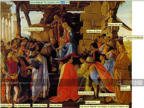圖1 杭州西湖是一個非常重要的項目,因為它是在公元8世紀就做出來的一個景觀規劃,那時候杭州是中國南宋的首都,一個擁有百萬人口的城市。當時規劃的項目主要基于防御、水供給以及農業的一些需要,后來偉大的政治家、文學家蘇軾對西湖進行了重整。盡管他們是基于實際工程需要來做這個西湖的規劃,但是后來被認為是一個自然景觀,它非常美麗。后來乾隆皇帝所作的關于西湖的詩歌都被收錄我們的課本中。西湖案例證明雖然是基于一個實際工程需要做的景觀規劃,但最終經過不斷演變成為自然景觀,并擁有很高的文化內涵。 黃山。在宋朝的時候,黃山成為很多詩歌和書畫中描寫的意向。這個皇帝當時做了很重要的區域保護規劃,據我所知這是全世界最早的一個景觀規劃。這個規劃非常具有突破性,因為基于文化的重要性來保護它。我們在游覽黃山的時候,應該明白我們看到的不僅是美麗的風景,同時我們看到的也是深刻的文化內涵。從景觀規劃角度,我們放慢改變環境速度,也是一種設計的方式。 在14-16世紀,這是意大利最有權勢的家族。圖2是非常有名的畫作表現的場景。這個家族在城市擁有宮殿,在鄉村擁有一些別墅。他們的別墅里面掛著的這些畫證明當時的一個觀點,認為農業生產的景觀是財富的象征。隨著時間演變,生產性景觀是美麗的景觀這一理念被大家所共識,并且在世界評估中作為非常重要的因素。