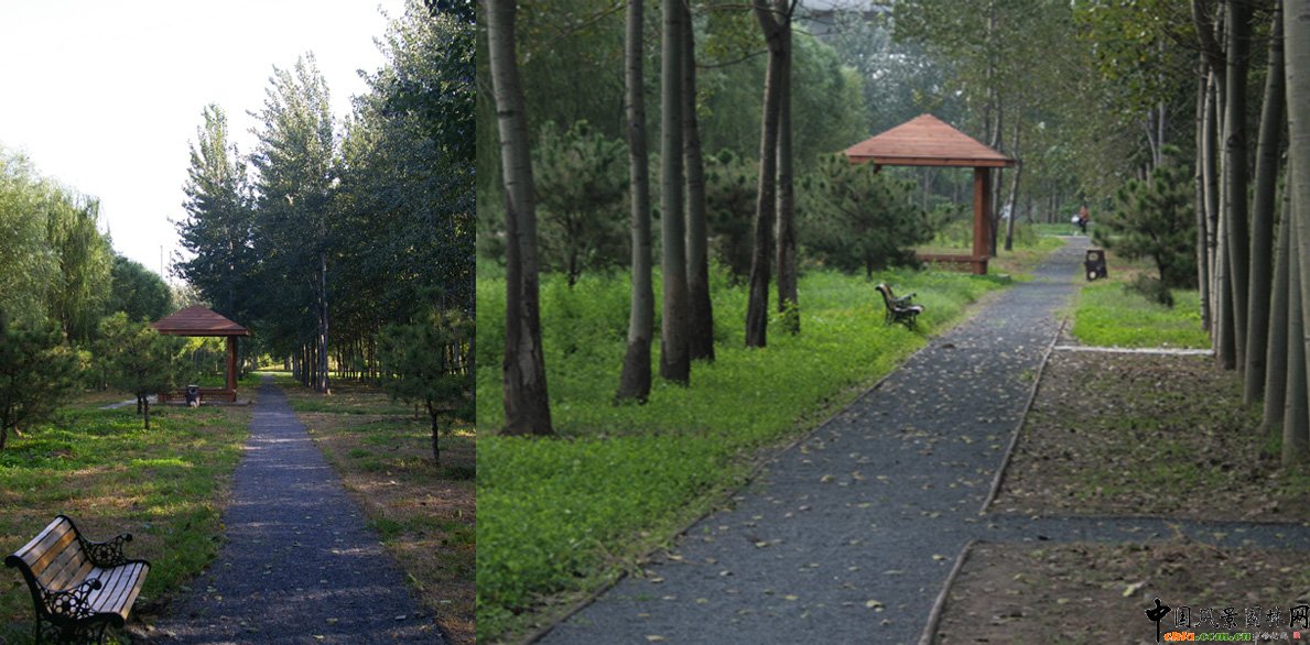 3、“郊野自然”生境的營造方法與實踐 節約、生態、共生的理念要貫徹于整個設計始終。統籌兼顧、因地制宜、以人為本是郊野公園方案初期直至現場后期貫穿各個工作階段的基本原則。我們從如下幾個方面來共同探討有關郊野自然的營造: 3.1郊野意境的環境營造應該體現審美觀念的轉變 通過我們對第二自然的再認識,脫胎于第三自然的園林設計在觸及郊野公園項目之初,就要樹立有別于以往城市公園的審美標準。明確我們為終端使用人群所打造親切、真實、乃至生動的郊野意境為目的。在設計與建設中有效把持景觀節奏的變化,它有別于常規城市公園景觀的突出特征就是環境包容力與景觀松弛度。 3.2郊野意境的環境營造更能體現出多學科的綜合 郊野自然景觀背后要求設計師將生態環境科學知識與風景園林造園知識相疊加,體現科學與人文、技術與藝術的充分結合。以天元公園原有魚池改造后的野態水景池塘為例(圖1) ![]() 改造前 改造后(攝于天元公園) ![]() 圖1 由原有硬質駁岸魚池改造而成郊野池塘 在設計師與相關生態工程技術人員的專業配合,通過池塘生態池底改造與中水給水循環利用,解決了池塘防水與給水;通過園林水景植物針對性配置與微生物投放,完成了野態水景景觀與水環境的凈化處理。從而,通過自然郊野的景觀塑造滿足了人們對自然郊野親近感受的心理需求與相關活動組織,同時也完成了對其周邊場所功能的轉變與升級。 3.3郊野自然生境的營造需要建立樸野回歸的種植設計觀念 我們在天元公園、老君堂公園等項目的種植設計中就“純粹與斑斕”的郊野意境景觀營造意向與構想展開實踐。對現狀魚塘、松柏林圃等基址的改造旨在表明對這一主張的探索與實踐。 3.3.1純粹——對現狀生態林的空間結構改造與全新植被空間的打造。 單一的植被結構雖然缺少傳統園林造景意義上的層次豐富、高低錯落,但其卻充滿了足夠的景深和空間序列感。從因地制宜的角度,我們最大化尊重原基址主干樹種的結構特征,力圖把握好“第二類自然”里所包含的純粹意境與樸素之美。 ![]() 圖4 利用場地現狀改造而成的景觀(攝于天元公園) ![]() 圖5 郊野里的幽靜與深遠(攝于老君堂公園與天元公園) “純粹”包含著“第二自然”里所孕育的量感美和韻律美。改造現狀生態林所運用的“減法”設計手段其結果,是在最大化“第二自然”本身所擁有的真實、質樸的美。 ![]() 改造前 改造后(攝于天元公園) 圖6 改造后的松林空間更具空間美與量感美 3.3.2斑斕——觀賞草與野生花卉組合在郊野類型公園中的運用 觀賞草近年來以其適應性廣、抗逆性強和養護成本較低等特點,在節約型園林建設中得到大力推廣,同時伴隨人們審美趨向的日漸回歸,觀賞草在園林中得到了更為廣泛的應用和青睞。觀賞草在北京地區園林的應用主要分為地被覆蓋型、孤植點綴型、片植叢植型、鑲邊屏障型幾類。 以中下層地被類植物配置來塑造郊野質感是突出這類綠地自然、野性景觀特征的有效途徑。各種狼尾草、柳枝稷、日本亂子草、求米草等種植可以充分展示郊野類型特征。 ![]() 圖7 充滿郊野質感與觸感的觀賞草應用(攝于天元公園) 野生花卉組合的應用賦予了大地斑斕的色彩和彌漫空氣中的郊野味道。其花期長,適應性強、管理粗放郊野氛圍營造濃郁的特點值得在“郊野自然生境”的景觀營造實踐中廣泛應用與推廣。 ![]() 圖8 路緣、場地邊的色彩(攝于天元公園、老君堂公園) ![]() 圖9 林下的斑斕色彩(攝于老君堂公園) 3.4郊野意境的環境營造需要表現在相關技術的更新 突顯郊野質感與回歸意向,純粹、松弛的狀態往往能夠滿足人們找尋原始、自然的真實心態。大量不同于傳統園林的材料運用與做法更新,使得郊野意境的營造要求設計師將生態環境科學知識與風景園林藝術進行疊加,完成科學、技術、藝術的最終結合。比如,以工程技術為支撐,通過對材料與技法的實踐,嘗試著打破常規公園建設中鋪裝與土壤的剝離,將材料與土壤融合,從而傳遞鄉土質感、強調郊野意向。 ![]() 圖10 以碎石、麻繩組成的林間小徑更具鄉土質感、郊野特征(攝于老君堂公園) 3.5郊野意境的環境營造應該強調對參與性“自然野趣”行為的引導與培育 相比較城市公園,郊野類型公園應該通過松弛、親切、真實氛圍的營造完成人們由過去的單一“游賞”到現在的參與“游憩”觀念的轉變 。人們向往置身于野境中找尋野趣的快樂源自于們渴望對大自然的親近與回歸。我們在探尋與追求“郊野自然”景觀環境的同時,同樣要把持“游”的動態路徑與“憩”的靜態空間的組織與設置。只有動、靜交織、游、憩結合的空間處理手法才能調動起人們參與活動的積極性,滿足人們與大自然融合目的訴求。合理的游憩規劃更加能夠激發使用者的空間使用創造性。便于人們更加充分接觸自然、觀察自然、發現自然、感悟自然。 ![]() 圖11 魚塘邊垂釣的人群(攝于天元公園) 圖12 公園里的親子空間(攝于天元公園) 3.6郊野意境的環境營造要求加強“公眾安全”的輔助與建設 北京“公園環”中單體公園規模普遍較大,大都地處城市核心建設區域的外邊緣及過渡地區。我們在通過保留、保護、建設等措施積極營造郊野意境環境的同時,同樣要加強公眾安全的建設: a)以水體、沼澤濕地等景觀為突出
