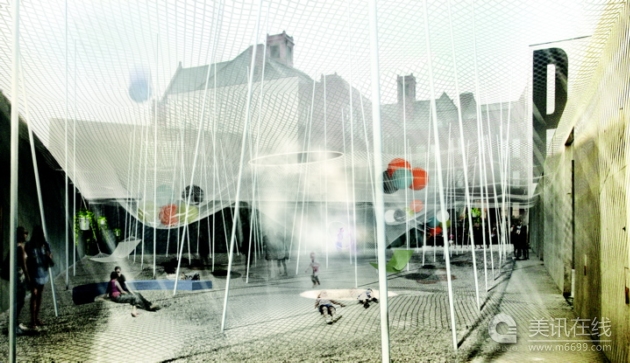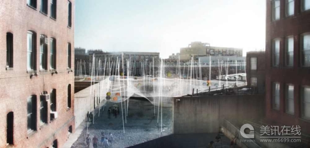 紐約現代藝術博物館和PS1挑選出SO-IL設計公司的“跳舞的鋼管”(Pole Dance)作為2010年度青年設計師工程(Young Architects Program)的獲勝作品。這個青年設計師工程活動已經進入到第11年,主要是將PS1的庭院改造成迷人的環境,并為夏季流行音樂系列活動做準備和熱身。該方案會讓游客進入到音樂系列中,并在電視游戲一般的環境中參與音樂節目。 ![]() ![]() ![]() ![]() 場地上修建一系列用相互連接的柱子和彈力繩組成的網格,碰撞的時候會彈起來。每一個網格有一些好玩的東西,如吊床、拉繩等,還種植了能吸水雨水的植物。整個系統用一張打開的網覆蓋,上面有一系列彩球。下降兩格后,這張網將覆蓋住一個池塘和一個沙坑。 紐約現代藝術博物館的建筑部負責人Barry Begrdoll說:這是一個有趣的工程,體現了媒體和電腦的虛幻世界。簡單的材料和優雅的外觀使之轉變為一個游戲和社交的場所,虛擬世界中很多東西在這里實現。此外,這里還設有坐席、飲水和酒吧區。所有的材料都用簡單的可持續材料,可以回收再生。
