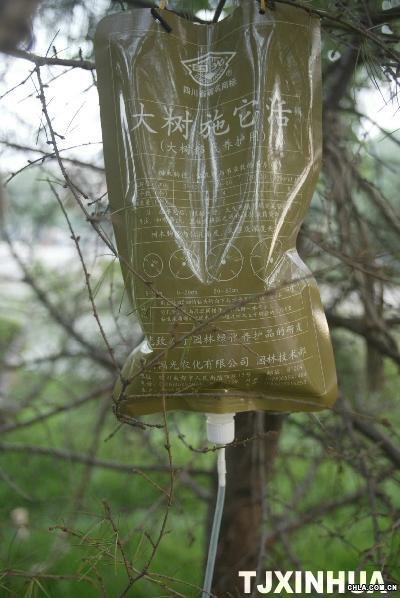 給樹“打點滴”輸入樹體的生命液-“大樹施它活”。