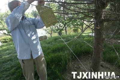 在河邊遛彎的市民對大樹“打點(diǎn)滴”感覺非常好奇。