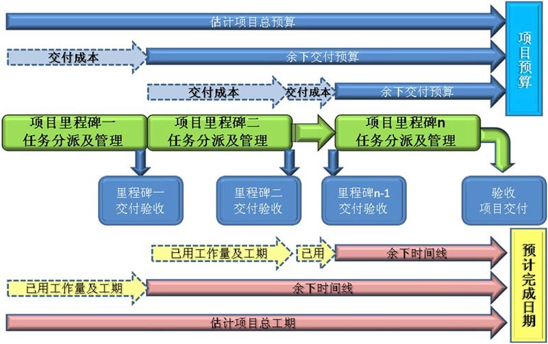 過(guò)去我們習(xí)慣的財(cái)務(wù)及進(jìn)度管理模式是依據(jù)項(xiàng)目交付進(jìn)度的百分比為依據(jù),但這種管理思維多未能保證項(xiàng)目能夠如期完成交付。余下20%的任務(wù)不代表只需要20%的工期或預(yù)算完成。所以我們必須依據(jù)余下的任務(wù)不斷進(jìn)行評(píng)估,把管理的重點(diǎn)放在未完成的任務(wù)中。