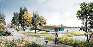 新塘湖公園位于塘沽西部新城,總面積約67萬平方米,包括東、西兩湖。目前,正在施工的是東湖工程,東湖總面積約為46萬平方米,其中水域面積約17.2萬平方米 ,沿湖周邊分布了大小各異的15座生態島,園區內綠化面積11萬平方米。東湖公園周圍還布置七處臨水垂釣區及健身區,供游人娛樂。湖的周圍規劃分布四座外形各異的水上休息亭,供市民休憩乘涼。面積達7850平方米的市民廣場將成為整個公園的中心景區,廣場中心的觀景廊橋設計前衛,外觀獨特,可直接深入湖心,與湖心小亭相連,讓人置身湖面,享受微風拂面。市民廣場周邊還將分布兩處景觀棧橋和沿湖親水區,市民廣場的外圍湖面上,還將建設兩處湖中觀景平臺。在新塘湖的東側區域,規劃建設兒童娛樂場、街頭運動場、健身活動場、體育運動場等各種功能性場地。