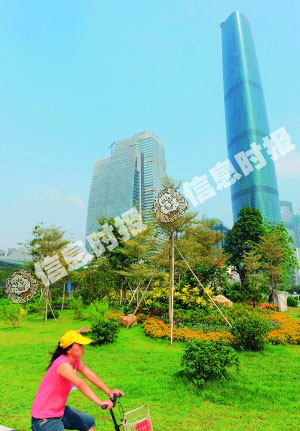 花城廣場(chǎng)一帶既有現(xiàn)代化的建筑,又有凸現(xiàn)嶺南特色的園林。信息時(shí)報(bào)記者 鄭啟文 攝