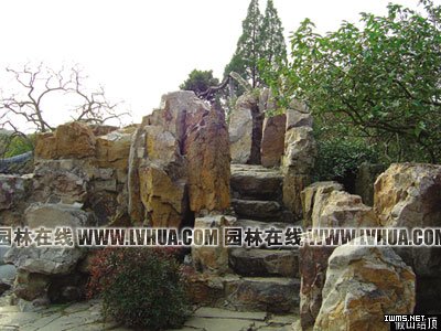 在晚明至清代中葉的假山組合單元中,主要有絕壁及峰、巒、谷、澗、洞、路(蹬道)、橋、平臺、瀑布等,其組合方法大抵是臨池一面建有絕壁,絕壁下設路(有的則以位置較低的石橋或石磯作陪襯),再轉入谷中,由蹬道盤旋而上,經谷上架空的橋(石梁)至山頂。山頂上或設平臺,或建小亭,以便休憩、遠望。一般峰、巒的數量和位置,都是根據假山的形體、大小來決定的;而石洞只不過一二,常隱藏于山腳或山谷之中;少數在山上再設瀑布,經小澗而流至山下。但園中假山并不一定都具備這些單元,有的只是部分,如明代假山的主體,多半用土堆成,只是假山臨水處的東麓或西麓建一小石洞。如蘇州藝圃在山的西麓,南京瞻園在山的東麓。這種辦法既可節省石料、人工,又可在山上栽植樹木,以形成蔥郁蒼翠的山林之氣,其景與真山無異。至于清末的假山,則形體多半低而平,在橫的方向上,很少有高深的谷、澗以及較大的峰巒組合,僅在縱的方面,以若干蹬道構成大體近于水平狀的層次。 絕壁 用太湖石疊砌的絕壁(石壁)是以臨水的天然石灰巖山體為藍本的,由于其受波浪的沖刷和水的侵蝕,會在表面形成若干洞、渦以及皺紋等,并會產生近似垂直的凹槽,其凸起的地方隆起如鼻隼狀。大小不一的渦內,有時有洞,但洞則不一定在渦內。洞的形狀極富變化,邊緣幾乎都為圓角,在大洞旁往往錯列有一二小洞。環秀山莊的石壁,主要模仿太湖石渦洞相套的形狀,渦中錯雜著各種大小不一的洞穴,洞的邊緣多數作圓角,石面比較光滑,顯得自然貼切。該假山西南角的垂直狀石壁作向外斜出的懸崖之勢,堆砌時不是用橫石從壁面作生硬挑出,而是將太湖石鉤帶而出,去承受上部的壁體。這樣既自然,又耐久,渾然天成,而不像有的假山用花崗巖條石作懸梁挑出,再在條石上疊砌湖石,顯得生硬造作。 黃石和石灰巖一樣,在自然風化過程中,巖面的石塊會有大有小,也會有直有橫有斜,互相錯綜,而且有會有進有出,參差錯落。蘇州耦園東部黃石假山的絕壁最能體現這種情形。其直削而下臨于池,橫直石塊大小相間,凸凹錯雜,似與真山無異。園林學家劉敦楨教授認為:“此處疊石氣勢雄偉峭拔,是全山最精彩的部分。” 洞室 一般設計在山體的核心部位,其大小須考慮到人體活動的范圍,所以高度常在2.20~2.50米之間,洞室周圍的面積以不小于3.0~4.0平方米為宜,如環秀山莊的假山石洞,其直徑在3米左右,高約2.7米。在設計洞室時,首先要考慮到壁體的堅固性,所以不論假山時代的早晚,一般多用橫石疊砌為主,同時還必須考慮到通風、采光,所以一般在洞壁上,還設計若干小洞孔隙,有的則在洞壁上開較大的窗洞,以利用日照的散射與折射光線。采光的要求,應以即便是陰沉的白晝,也能借助由外透進來的散射光線,識別人形及其一般人的行為活動為好。 洞頂的做法一般以長條石板覆蓋較為普遍,尤其是一些年代較為久遠的假山,或一些深長的山洞。也有用“疊澀”(即用磚、石、木等材料作出層層向外或向內疊砌挑出或收進的形式)的方法,向內層層挑出,至中點再加粗長石條,并掛有小石如鐘乳狀的,如惠蔭園水假山石洞,這類假山一般洞室較大。而清代乾嘉年間戈裕良所創造的“將大小石鉤帶聯絡如造環橋法”,采用發起拱的穹窿頂或拱頂的結構處理,則更合乎自然。一般洞頂的上部,就是登山后的山頂平臺了,所以也必須考慮用必要的石塊進行鋪平,灌漿,再覆土,或花街鋪地,并考慮一定的散水坡度,設計好散水孔。洞頂的結頂到山頂填充鋪平石的厚度一般應在0.50~0.60米以上,否則峰洞過分接近山巔,會感到山體的單薄感和虛假感。山巔平臺的外側需要設計女兒墻,以起到具有保護性質的欄桿作用,同時它也是懸崖峭壁的山頂的收頂部分,所以應注意其起伏變化。洞室內外還必須設計有內、外的登山臺階,即蹬道,由洞內到山頂的樓梯式蹬道常設計成螺旋狀,其高度大致與洞門的高度相等,一般設計得接近人體的高度,即在1.85米左右,這樣可起到使人感到需要稍微低頭才能進出的心理反應的效果。
