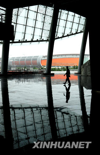 圖為一名工作人員從沈陽奧體中心五里河體育場的二層通道區內走過(攝于7月22日)。 新華社記者謝環馳攝